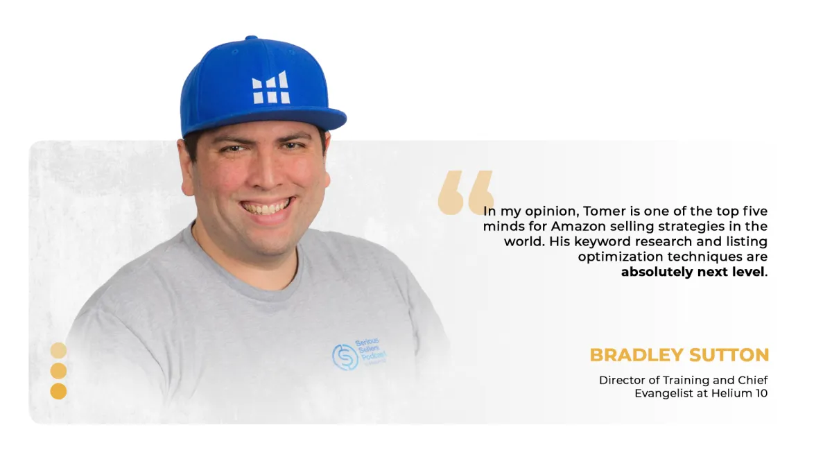 "In my opinion, Tomer is one of the top five minds for Amazon selling strategies in the world. His keyword research and listing optimization techniques are absolutely next level"