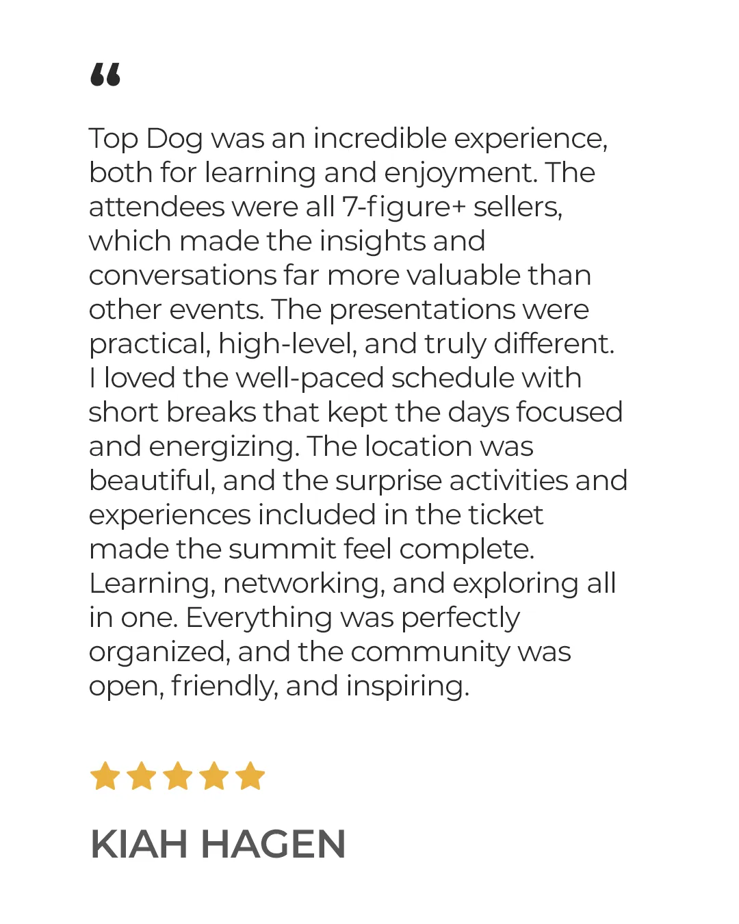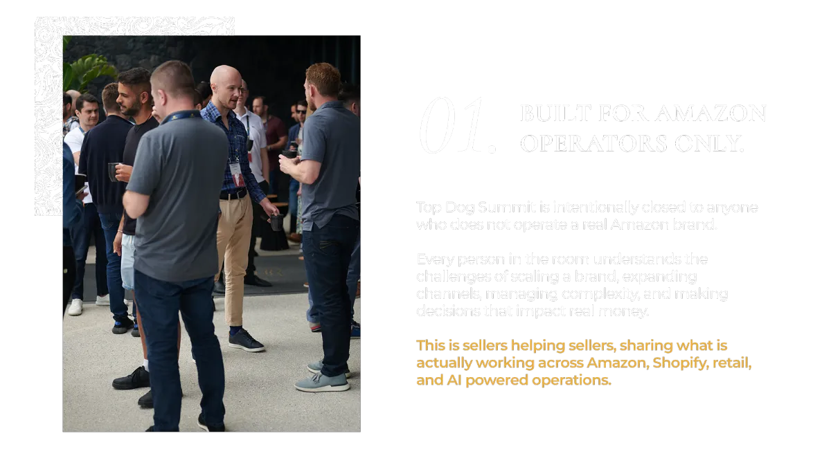 Each year, Top Dog Summit is a carefully curated experience, held in different locations, featuring unique themes, and bringing together top Amazon sellers and business leaders. Every Summit is different, offering new insights, workshops, and networking opportunities that make each event truly unforgettable.