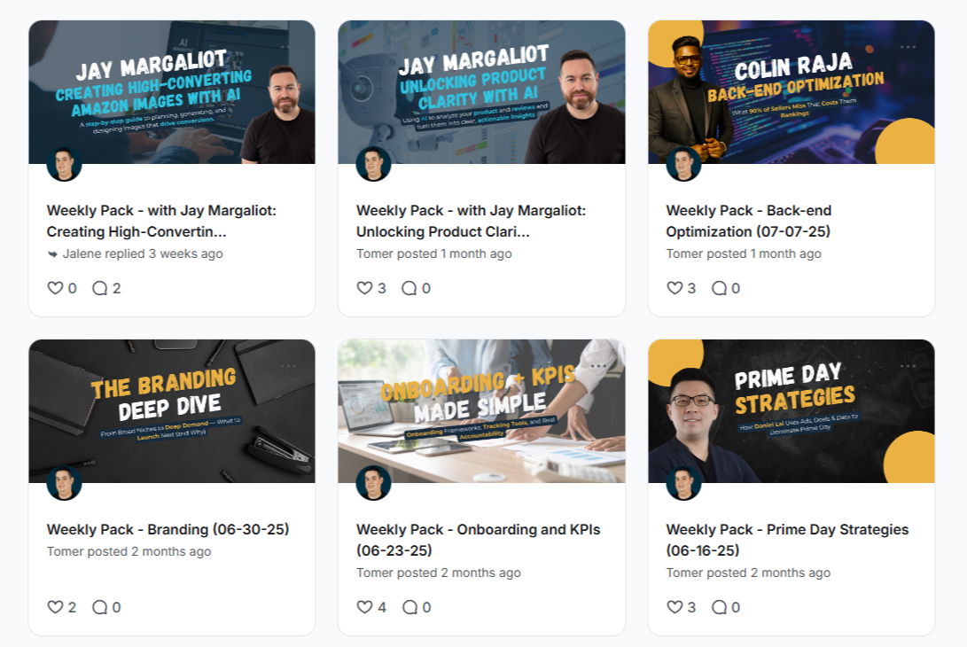 These resources mean you’ll never get stuck - whatever challenge you hit, the tools and courses are here to back you up. No theory, no filler, only what works for 7–8 figure sellers scaling fast