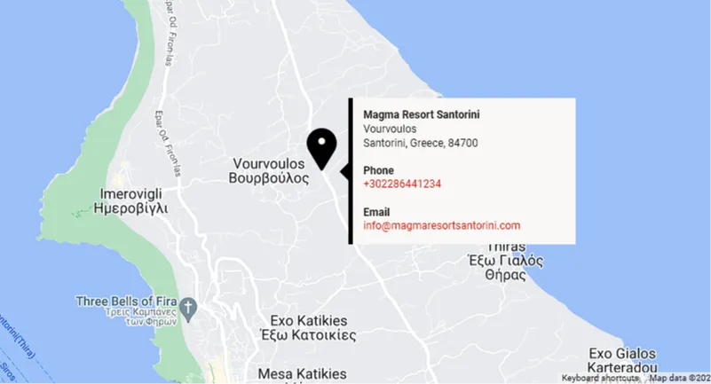 Santorini (Thira) International Airport. Magma Resort Santorini is 6 km away and it takes about 20 minutes by taxi. The cost for taxi is approximately